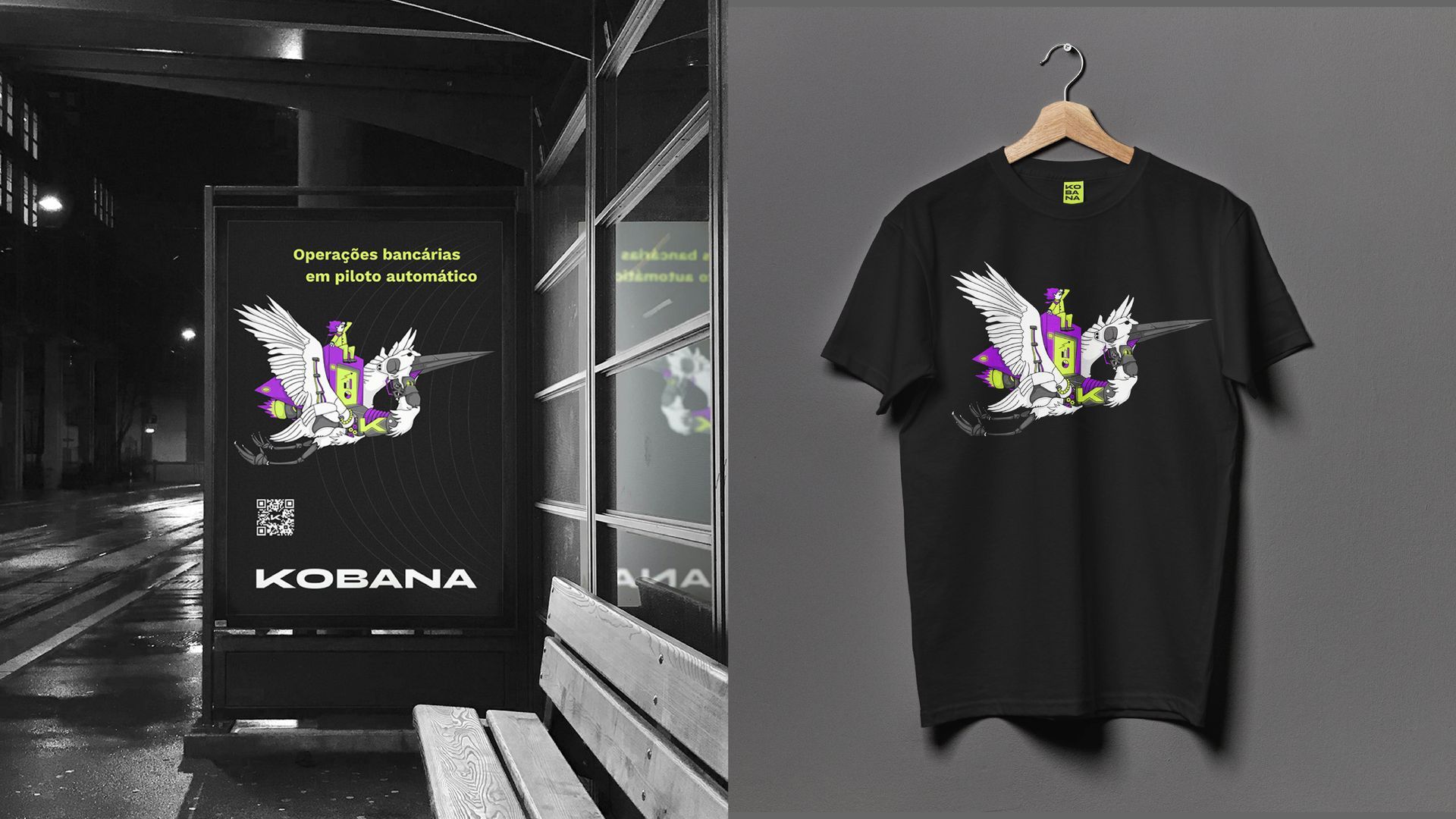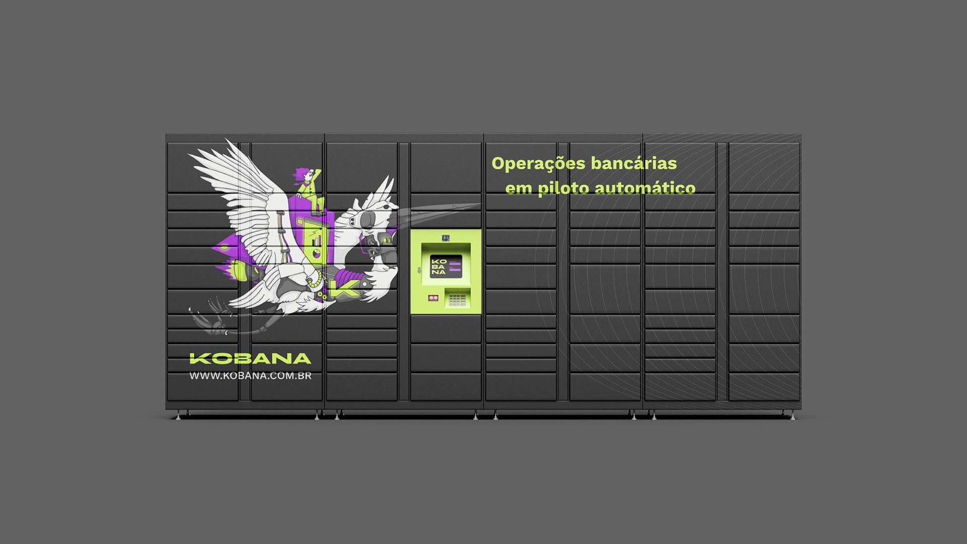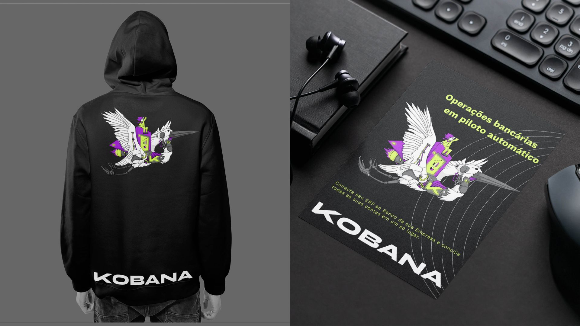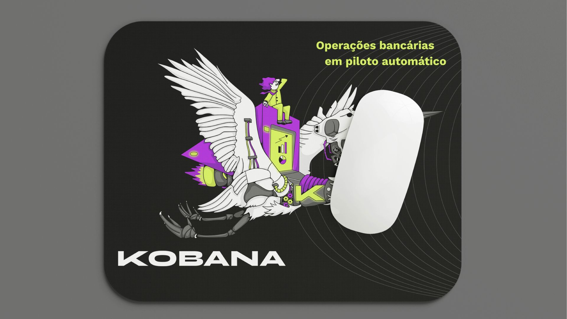 Fomos convocados pela kobana para criar ilustrações que pudessem funcionar como um complemento da marca criando conexões, diferenciação e memória visual de forma direta, simples e objetiva com os clientes da empresa. Um desenho que representa o paralelo entre o auxílio da tecnologia e a humanização, levando em conta a robustez, a modernidade e o lado artesanal da marca. A ideia é utilizar os desenhos em campanhas publicitárias tanto no físico quanto no digital, sendo possível criar conjuntos gráficos com a frase " Operações Bancárias em Piloto Automático " e com os grafismos existentes na identidade visual da marca.