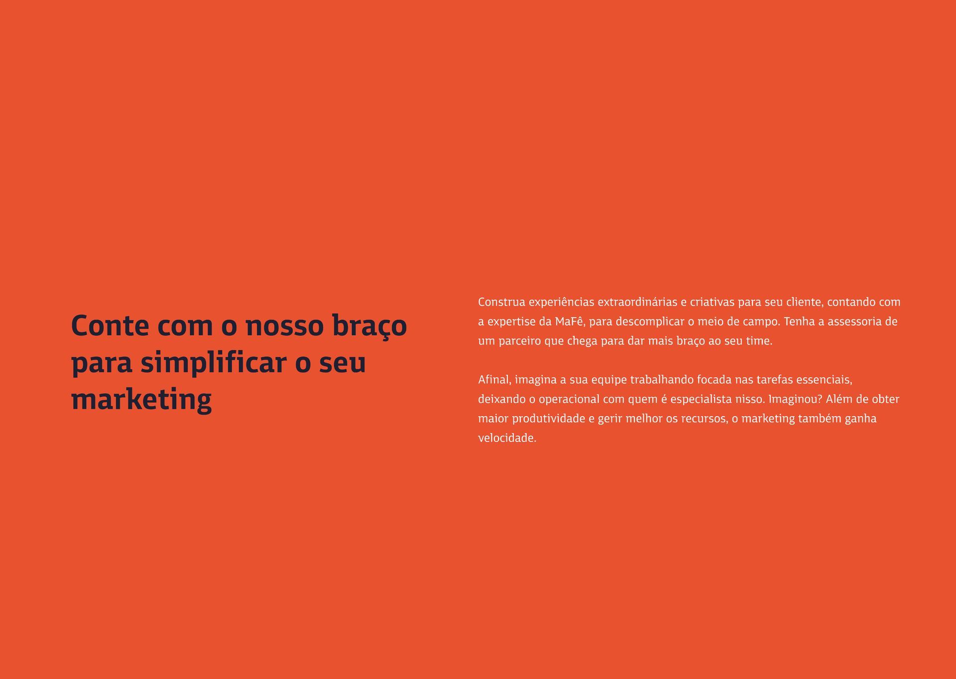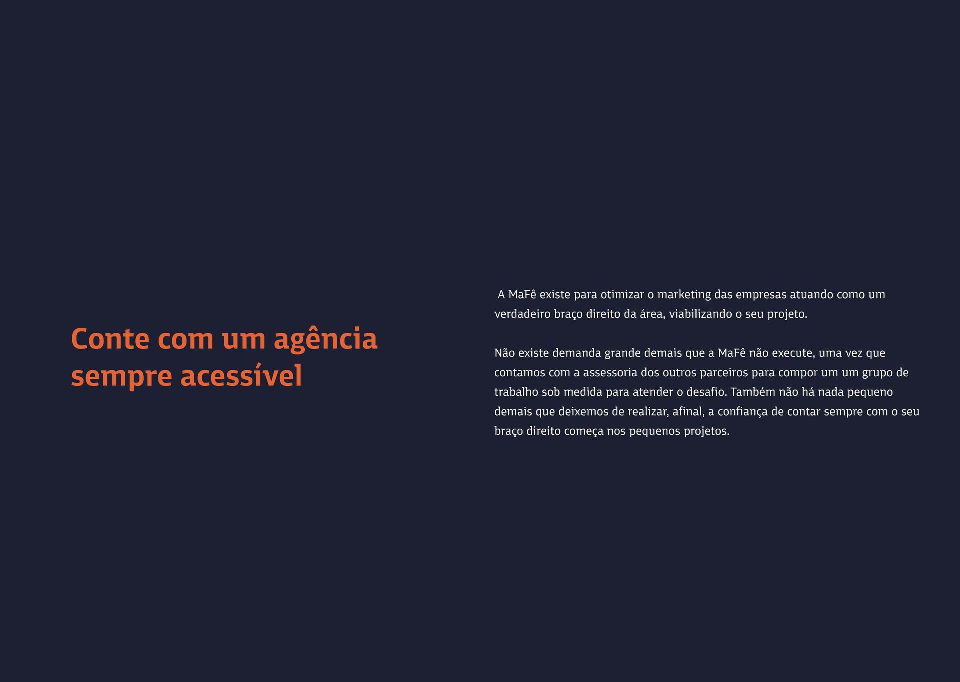 A MaFê é uma agência que simplifica e operacionaliza as demandas do marketing complementando sua equipe para tirar os projetos do papel.