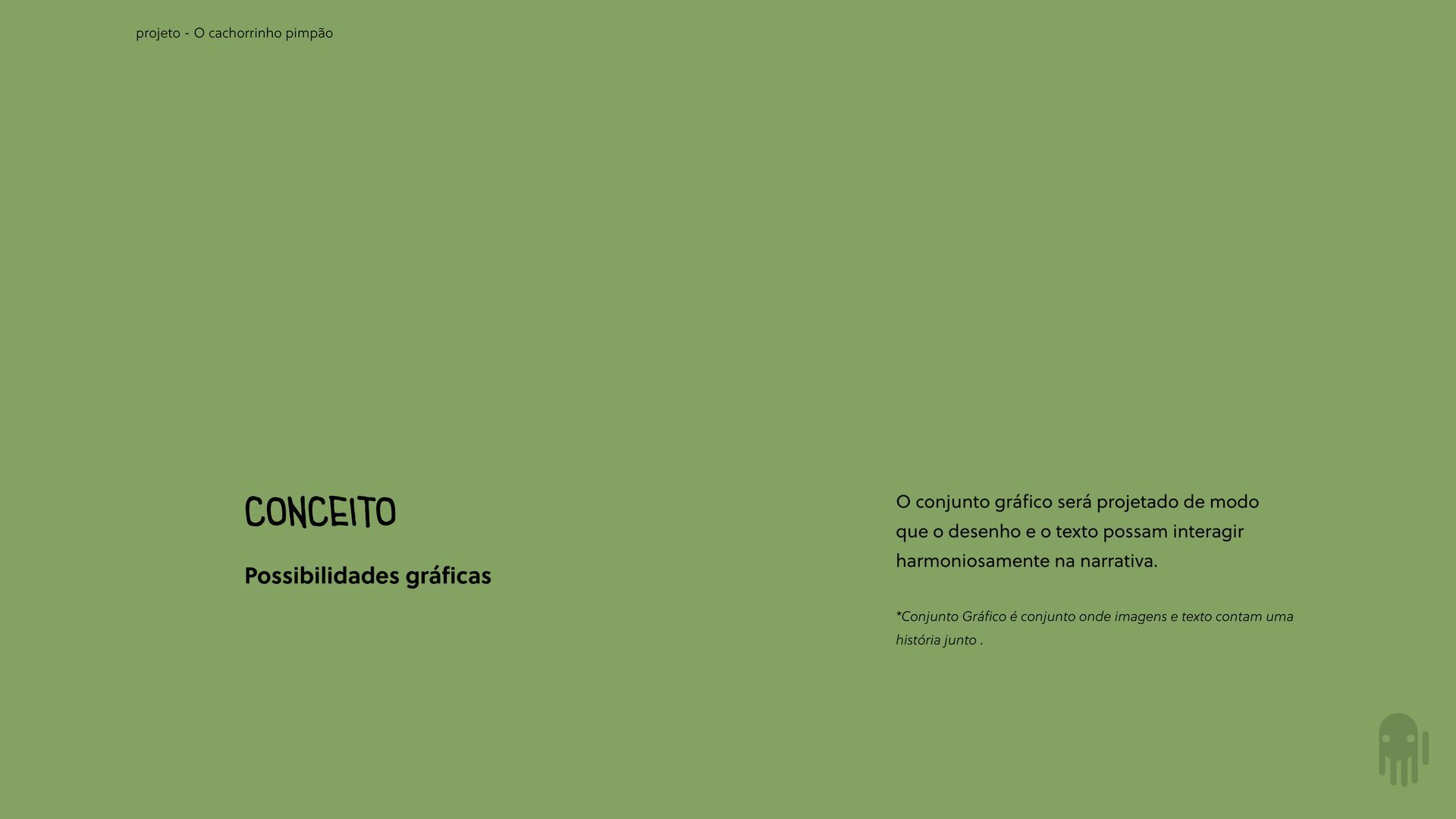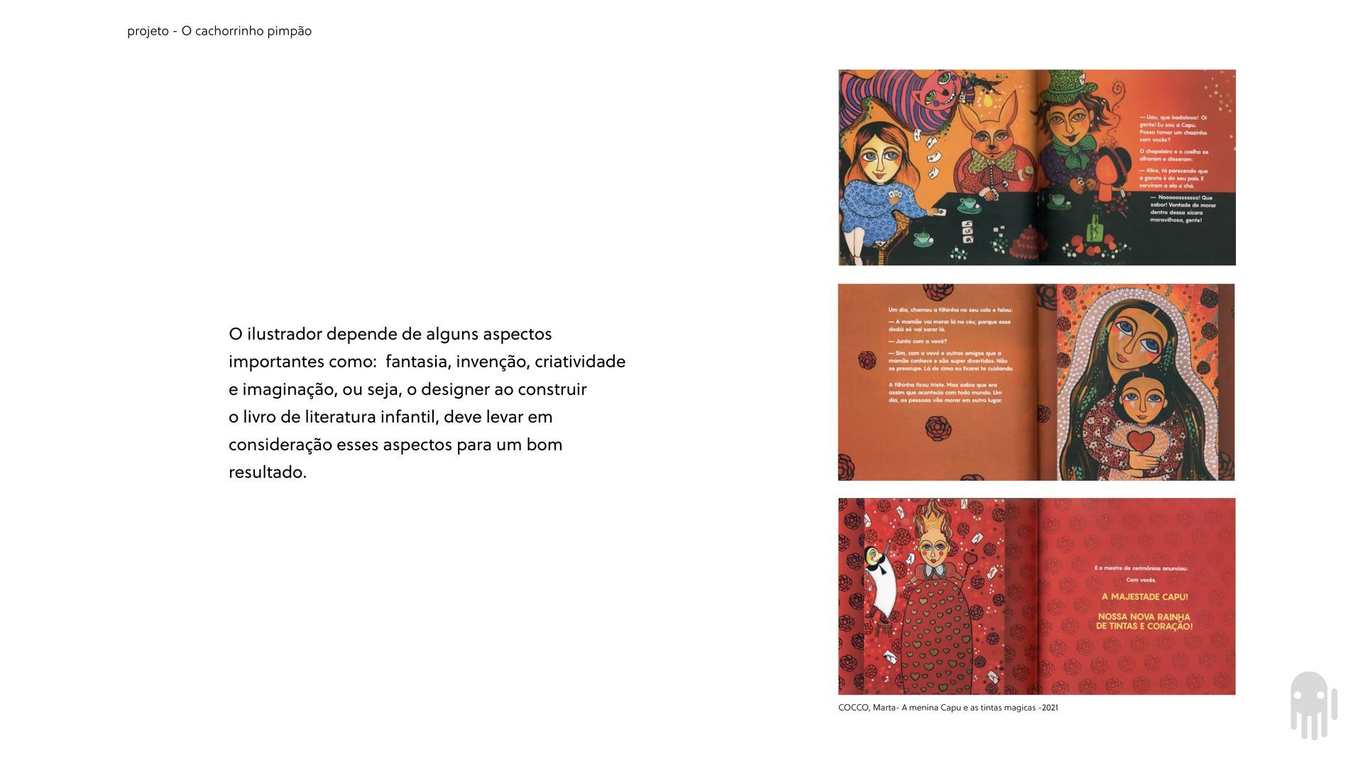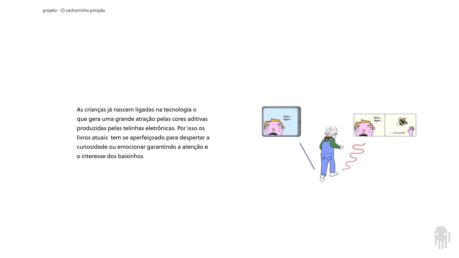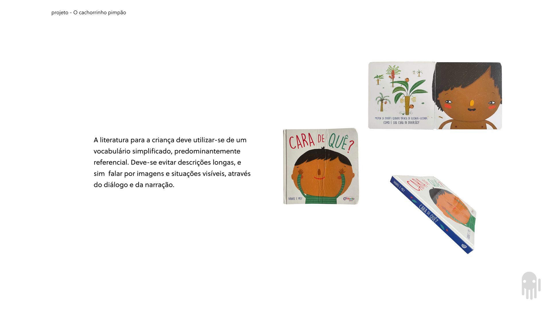 Partimos para uma imersão no universo da criança e a literatura refletindo através de pesquisas os principais aspectos que um projeto editorial de um livro infantil deve considerar em sua construção: de como garantir a atenção das crianças para o livro impresso diante das telas digitais, de não utilizar frases longas e sim falar por imagem e situações visíveis, estabelecer harmonia entre forma e conteúdo, dialogar com a fantasia, invenção, criatividade e imaginação, utilizar-se de cor como um importante recurso que estimula sensações e pensamentos, e estimular a descoberta dos significados da linguagem universal.