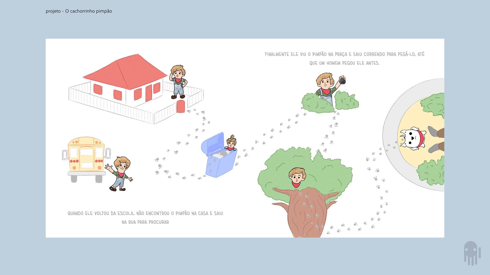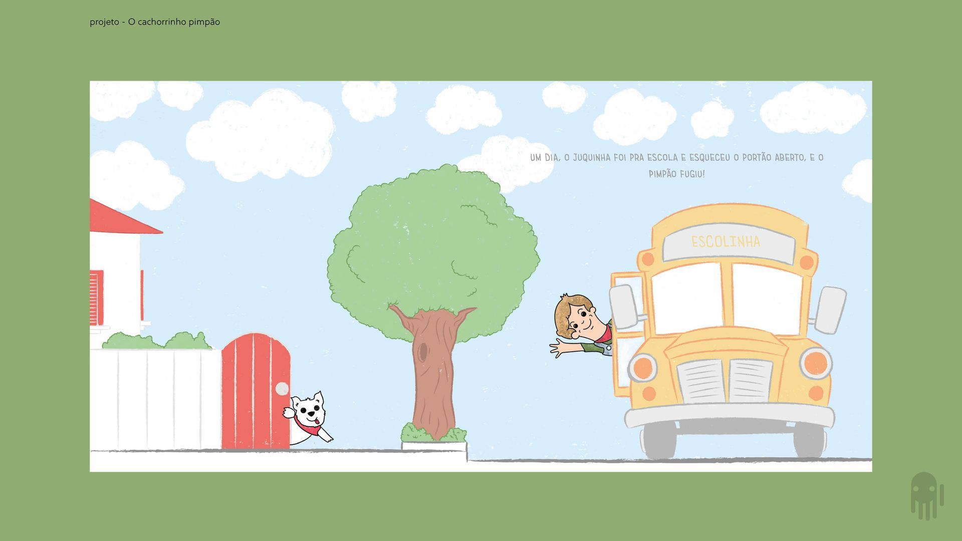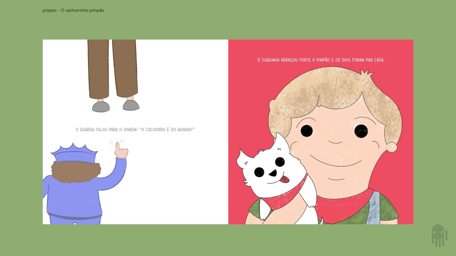 Juntamos os textos a imagens que ajudam a narrar a história de forma lúdica, criativa e interpretativa, levando sempre em consideração o jogo de cores de cada cena para causar sensações junto ao desenho. Por fim, fizemos a diagramação do livro para impressão, para que pudesse tornar-se um objeto físico e manter a história contada pela família por gerações.