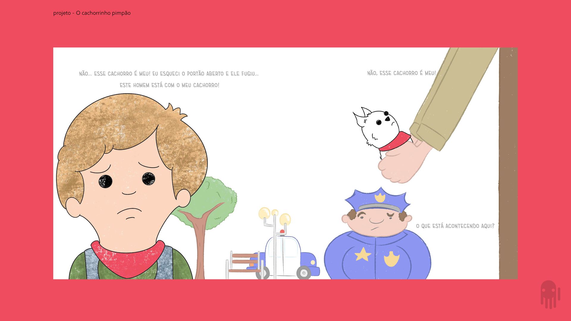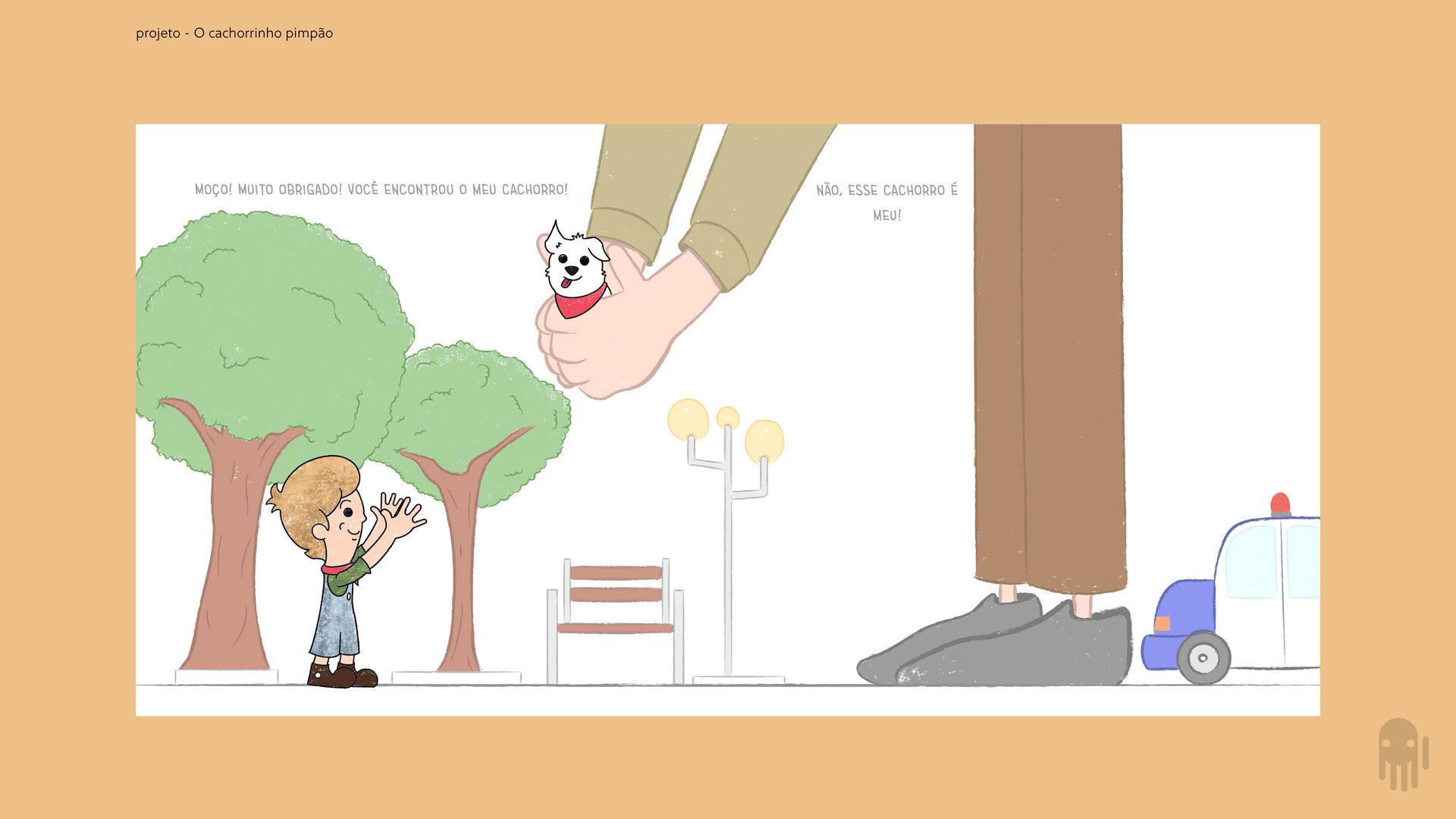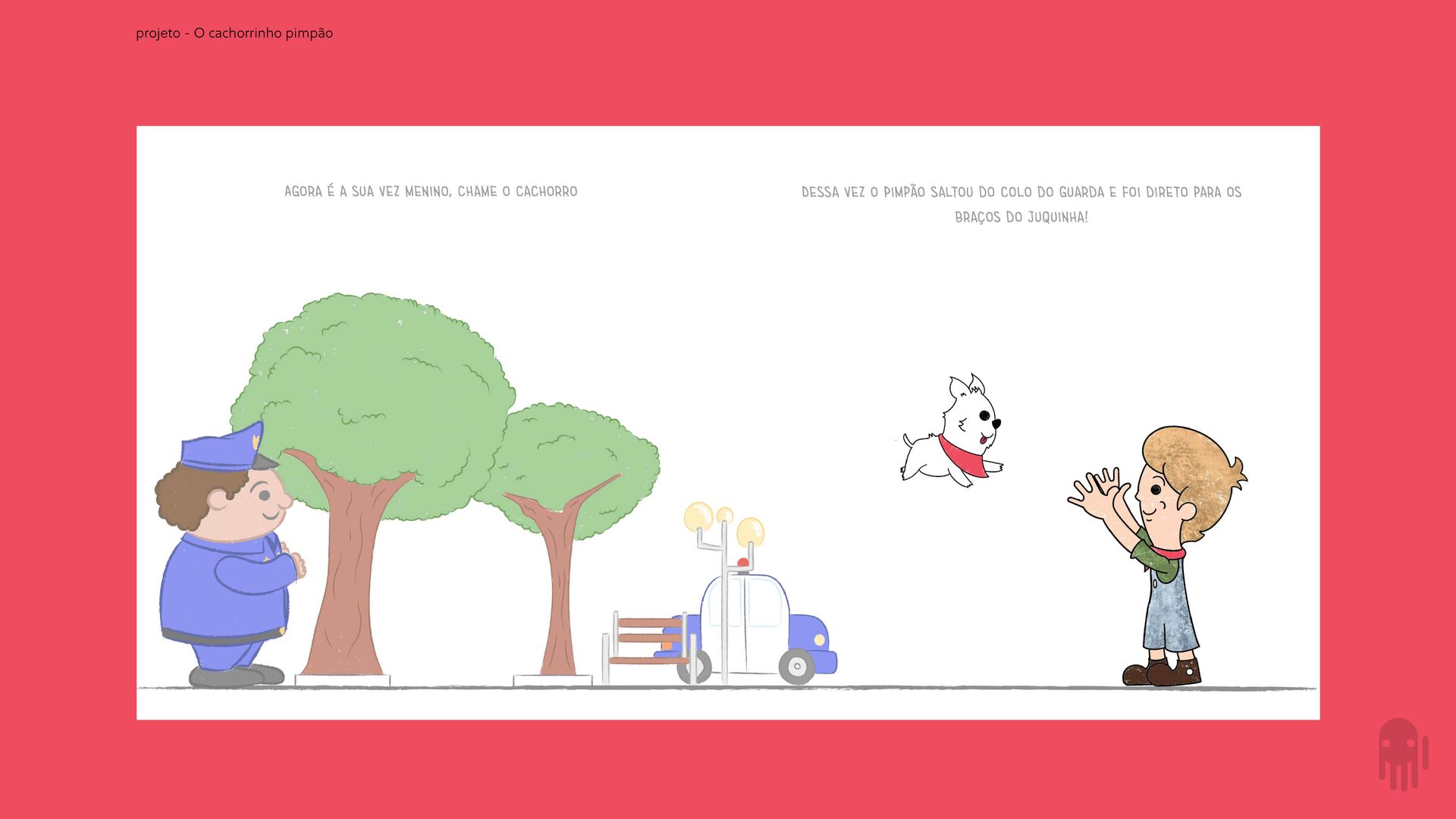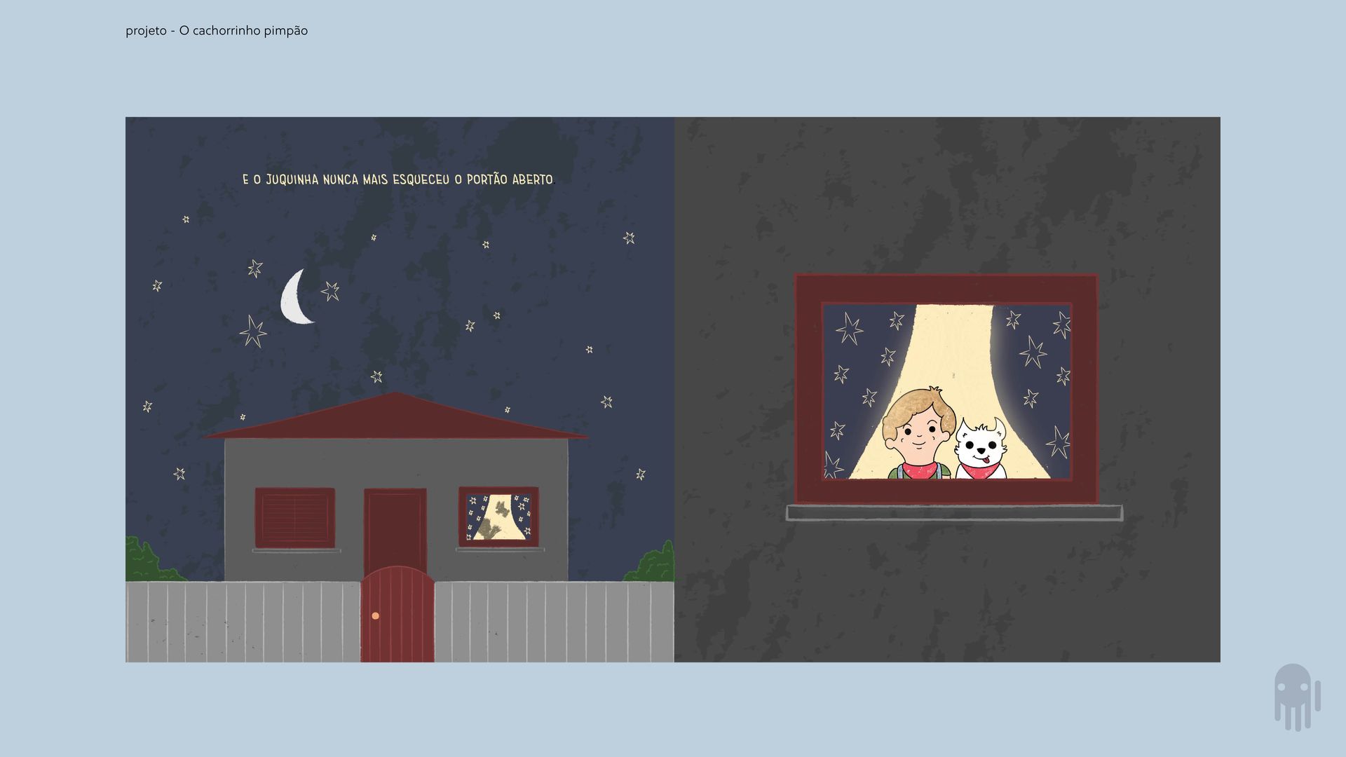 Juntamos os textos a imagens que ajudam a narrar a história de forma lúdica, criativa e interpretativa, levando sempre em consideração o jogo de cores de cada cena para causar sensações junto ao desenho. Por fim, fizemos a diagramação do livro para impressão, para que pudesse tornar-se um objeto físico e manter a história contada pela família por gerações.